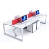 Los escritorios múltiples de oficina les ofrece soluciones a los espacios de trabajo que fomentan la comunicación sin perder la privacidad del usuarios. Cuenta con una gran variedad de accesorios como papeleras, libreros sobre cubiertas, archiveros o credenzas, cajoneras, etc.  como también facilidad de conexiones como ductos de conectividad , bandejas de cables, omegas de conectividad, Pasables y muchos mas que facilitara las conexiones y el cableado. Este sistema se adecua según las medidas y colores de sus espacios.